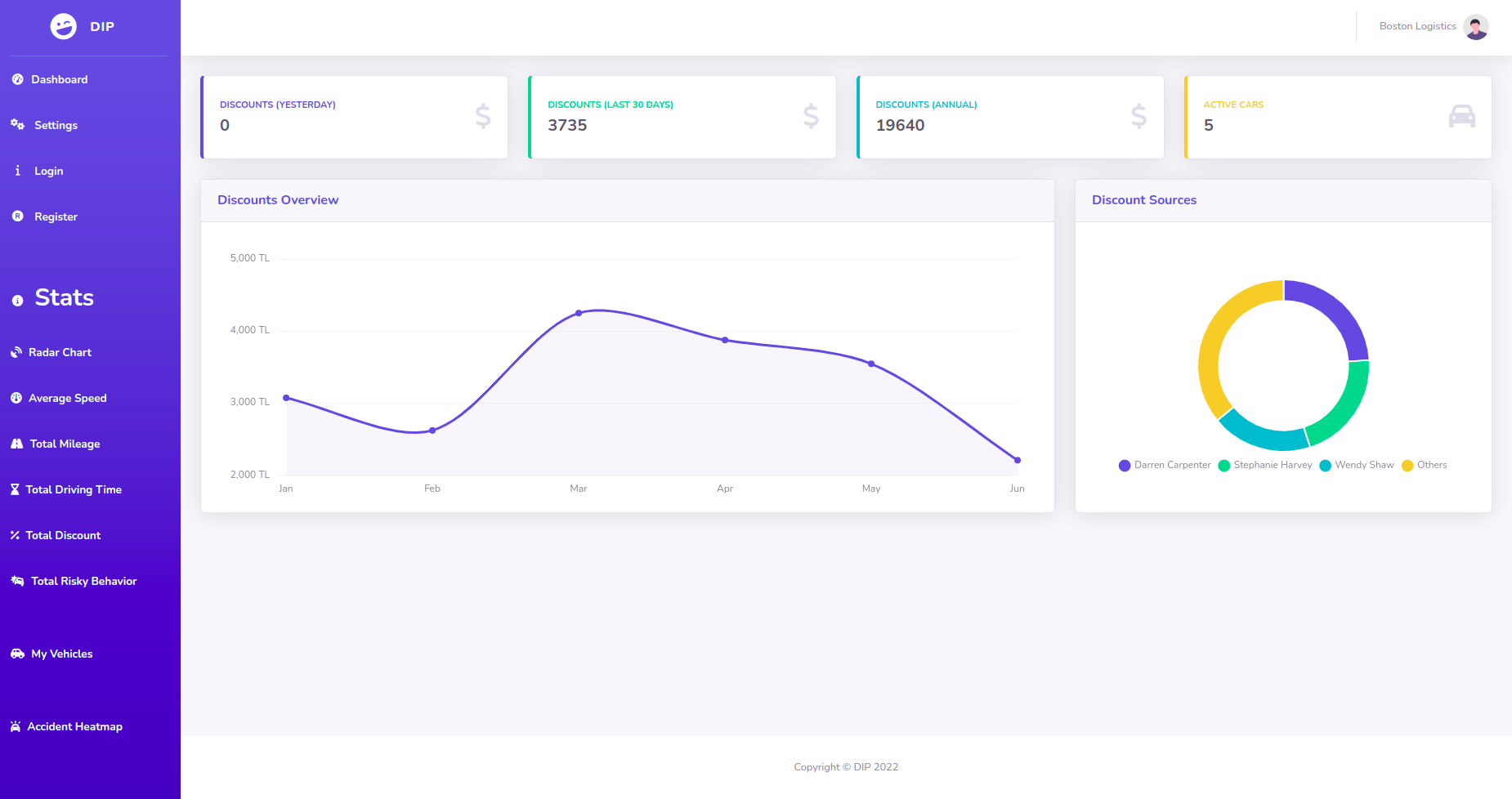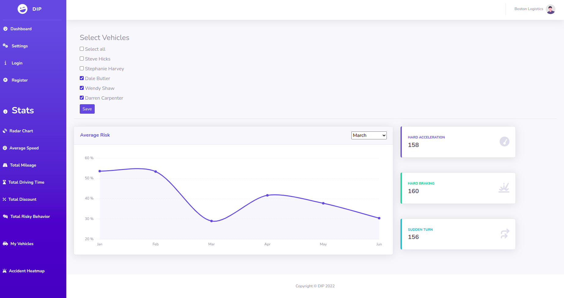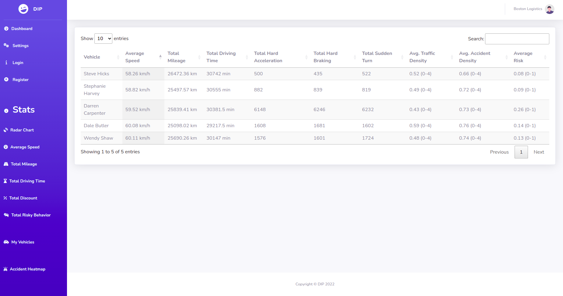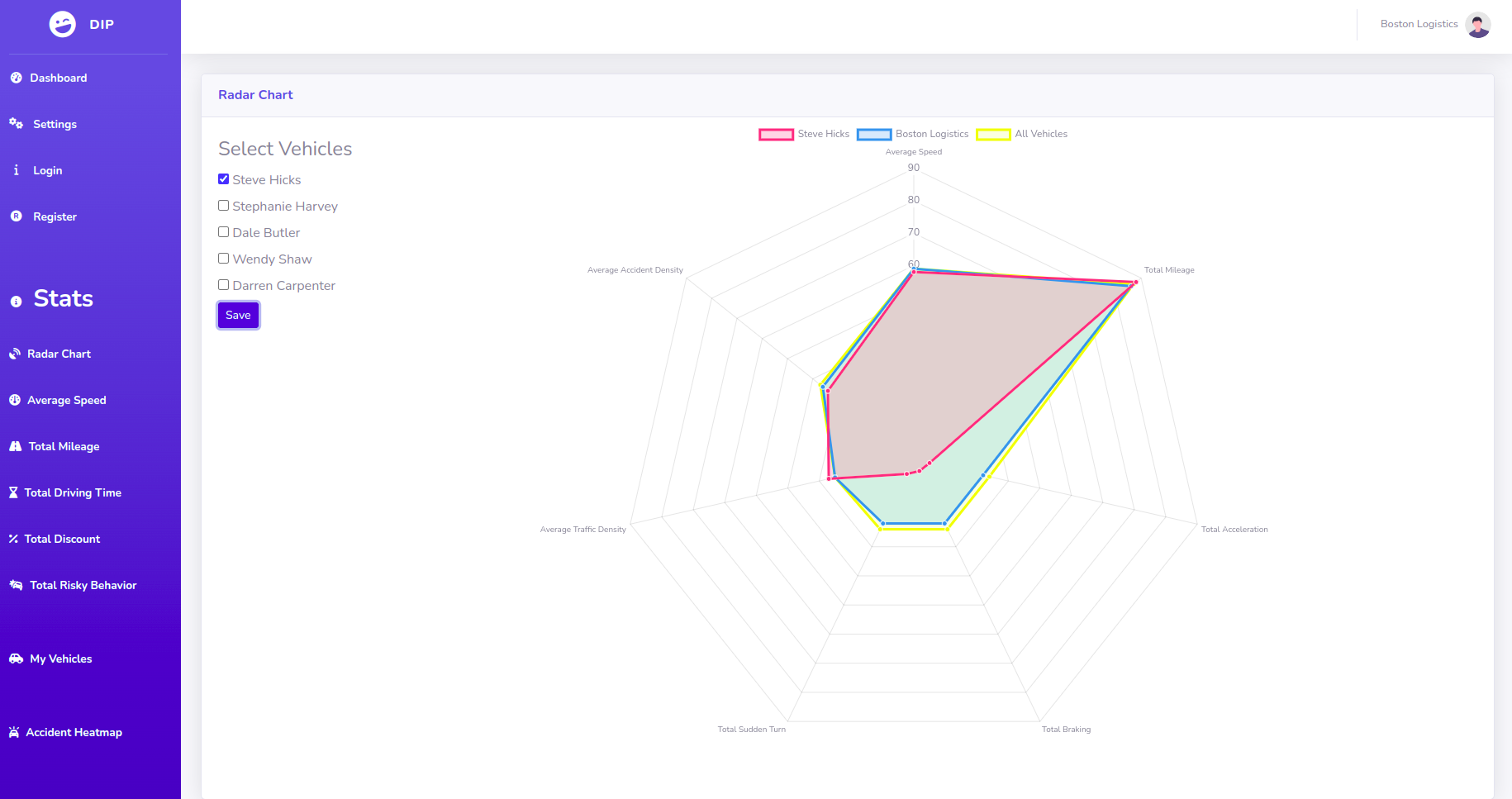 Simple website where users can see statistical analysis of vehicles both for individuals and fleets.